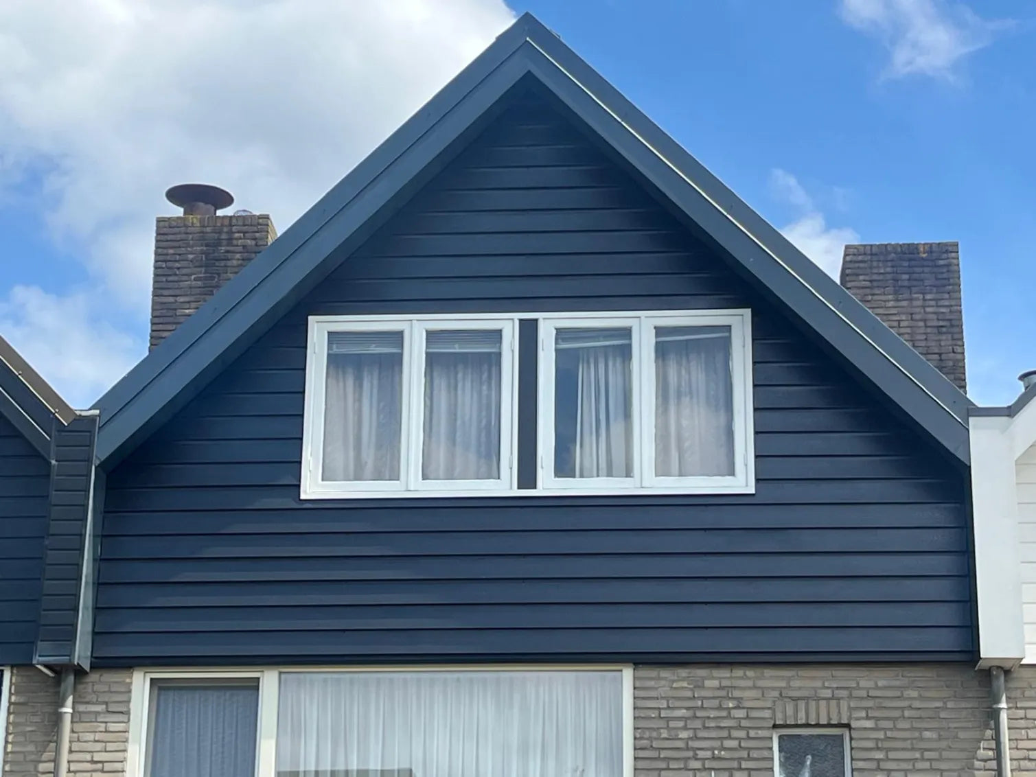 Bij deze woning hebben we de oude houten boeiboorden vervangen door duurzame aluminium bekleding. De bestaande boeiboorden waren aan vervanging toe: het houtwerk vertoonde scheuren en de verf liet los. In plaats van opnieuw schilderen – wat om de paar jaar herhaald moet worden – kozen we samen met de opdrachtgever voor een blijvende oplossing.